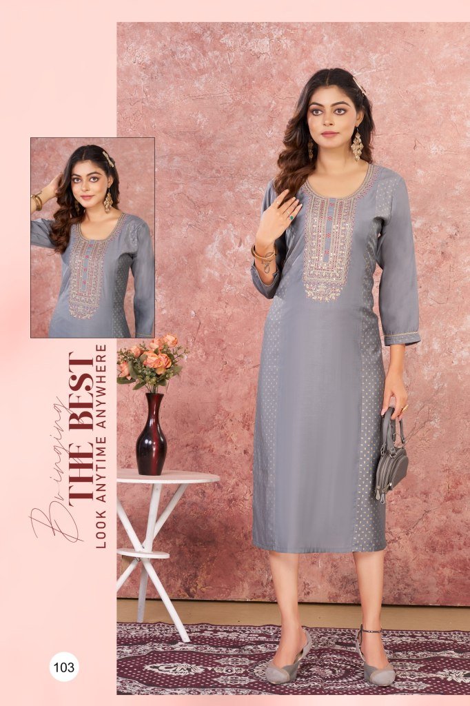 Deecee Eesha Roman Silk Screen Print Straight Kurti with Inner And Computer Embroidery Yoke Wholesale