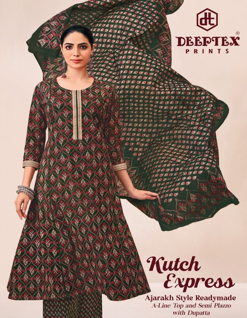 Deeptex Kutuh Express Women s Readymade A Line Long Top with Semi Palazzo Pant And Dupatta Set Wholesale