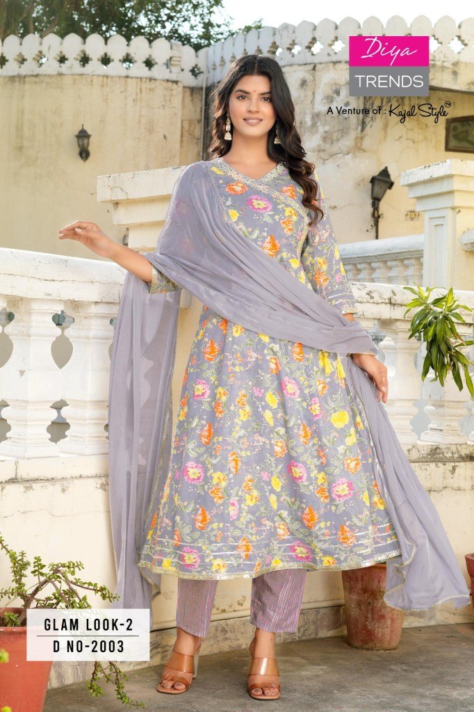 Diya Trends by Glamlook Vol 2, featuring elegant Cotton Anarkali suits with top, pant, and dupatta in sophisticated styles. This collection combines traditional charm with modern designs, perfect for festive and everyday wear, now available at an affordable rate.