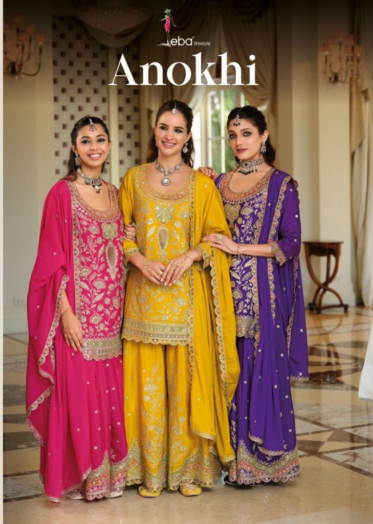 EBA Lifestyle Anokhi Collection Chinon Embroidery Palazzo Suits