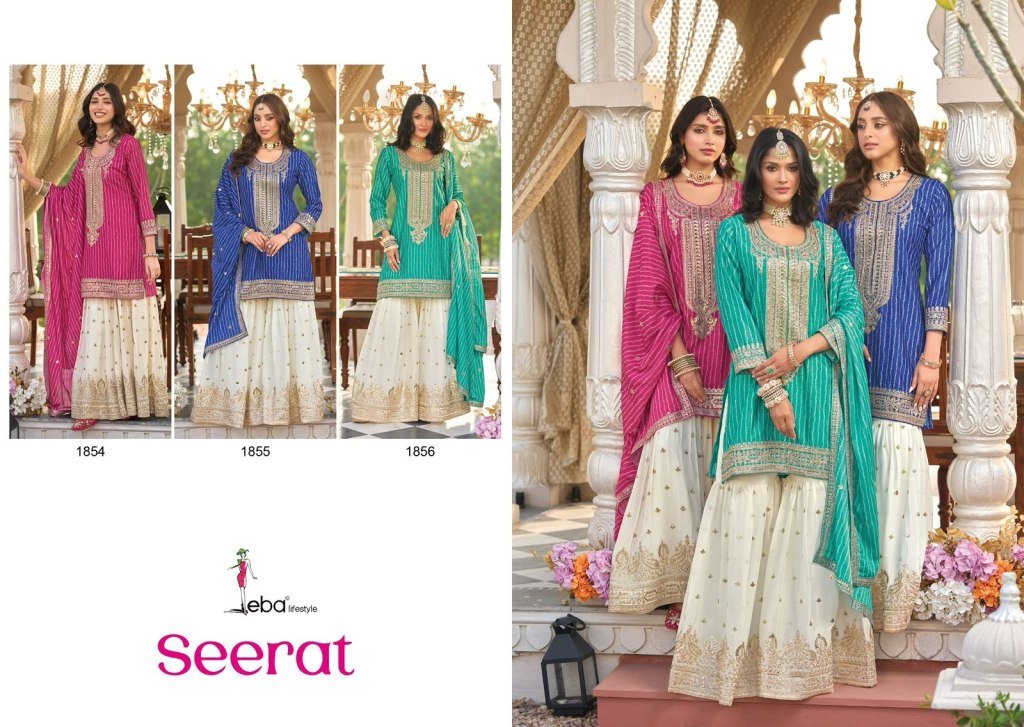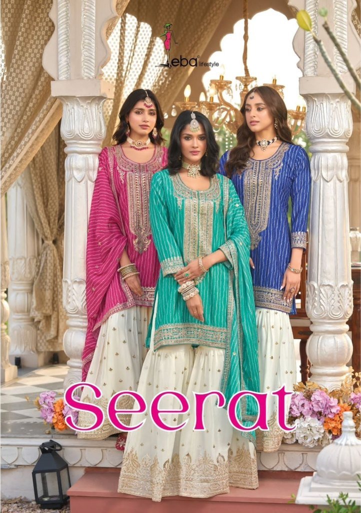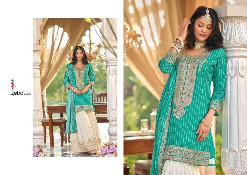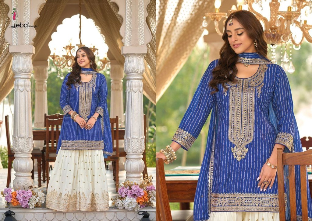 Eba Life Style Seerat Chinon Digital Printed Suit with Embroidery Top Embroidered Plazo Set Digital Print Dupatta Whjolesale