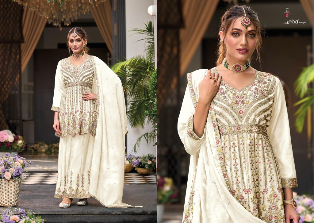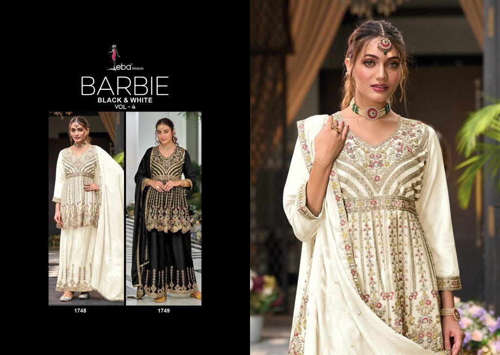 Eba Lifestyle Barbie Black and White Vol 4 Heavy Chinon Embroidered Suit Set