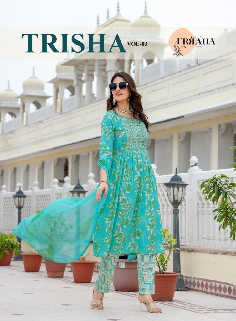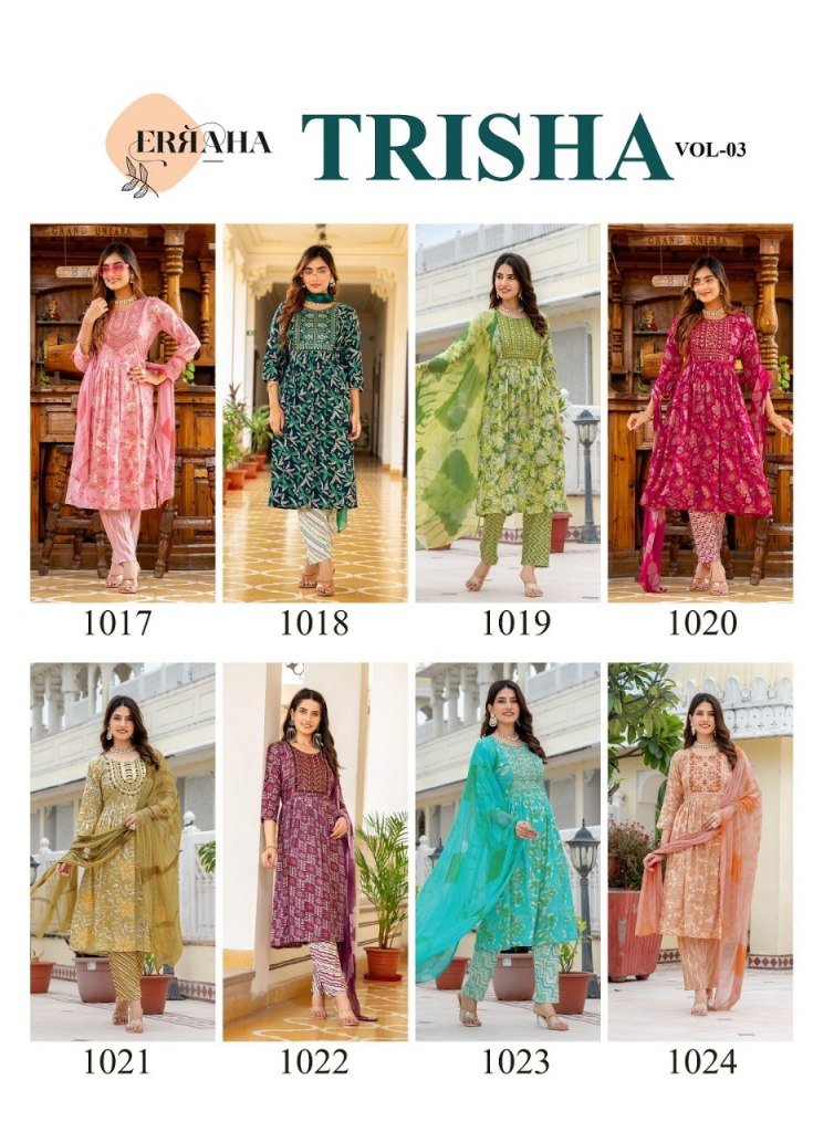 Erraha Trisha Vol 3 Umbrella Style suit heavy rayon catalogue wholesale rate
