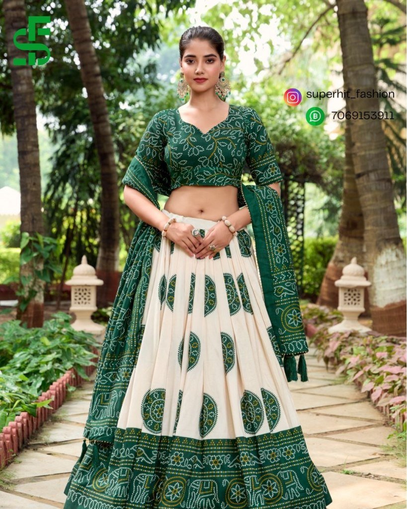 Festive Flair Bandhej Print Tussar Silk Lehenga Choli 1229 Green Colour Artisan Charm Bandhej Tussar Silk Lehenga Choli with Gotta Patti Border and Ta