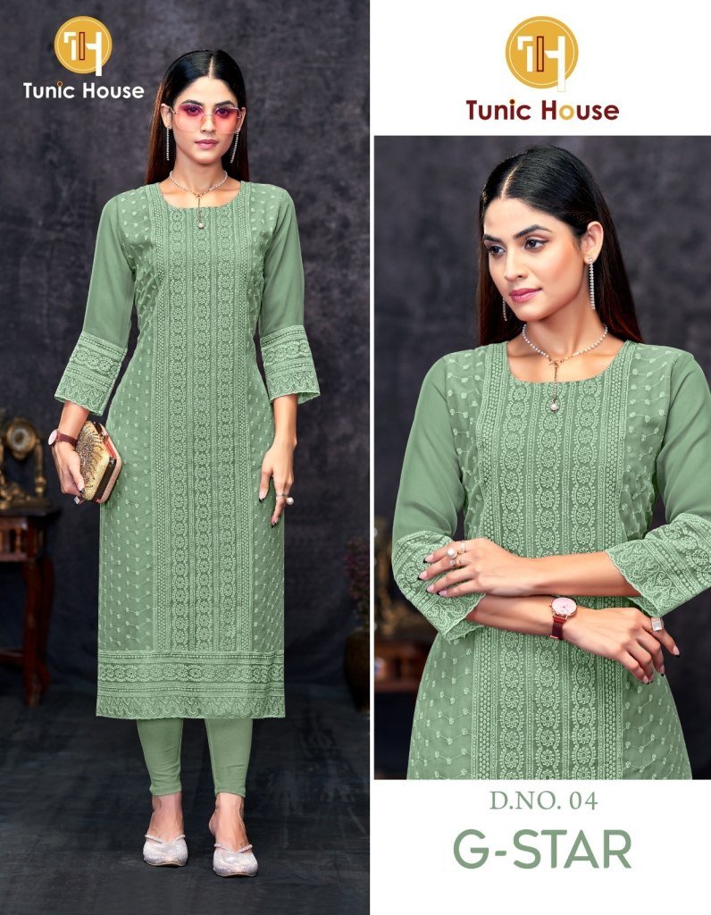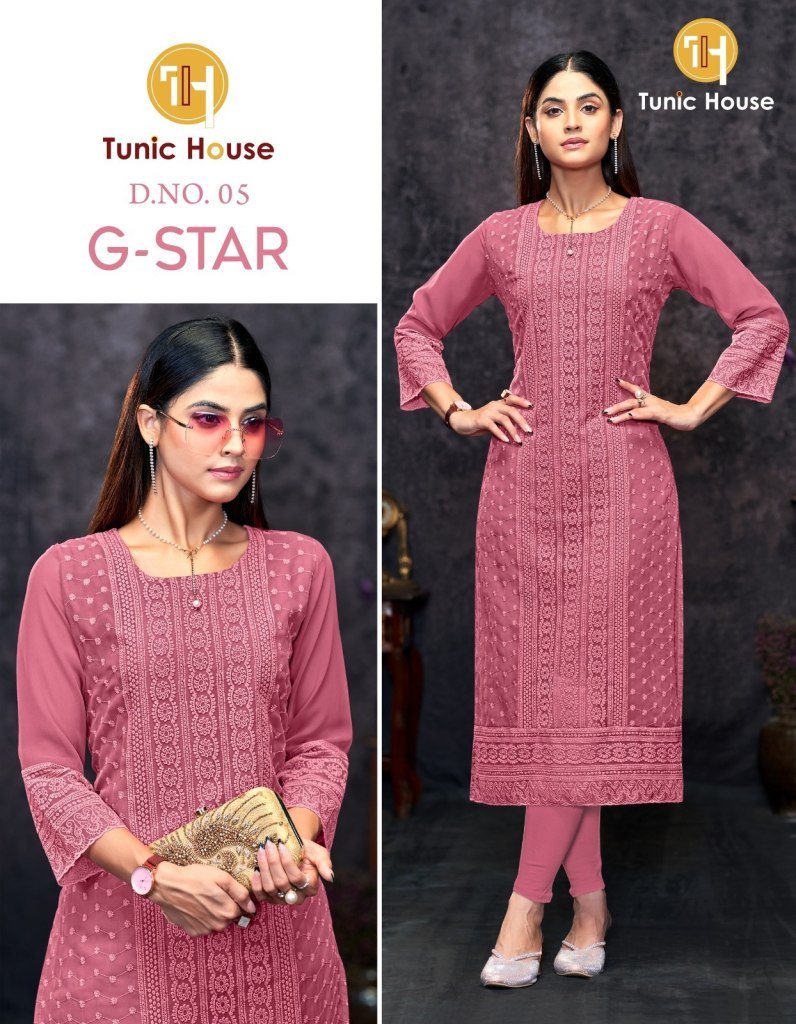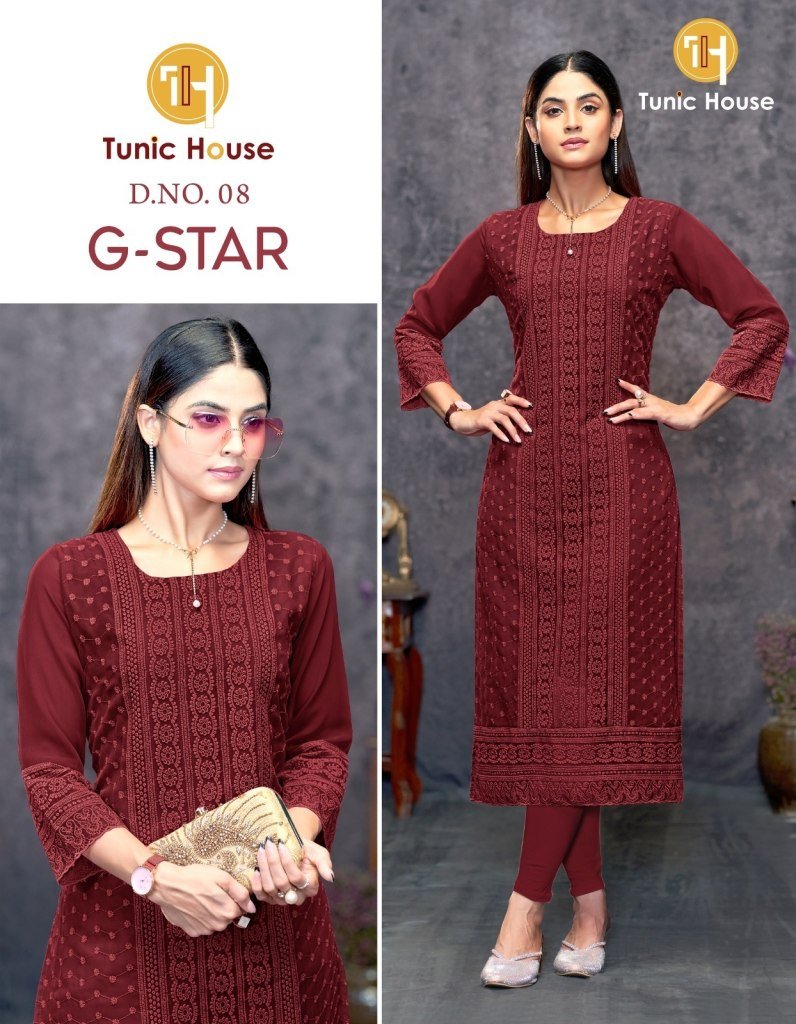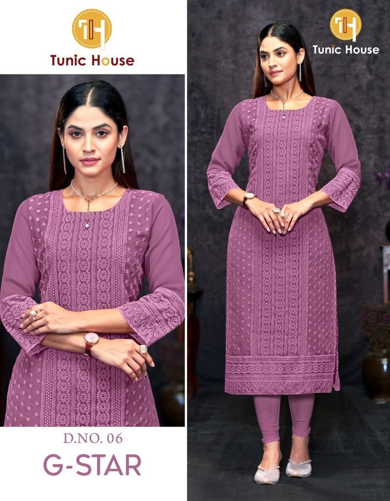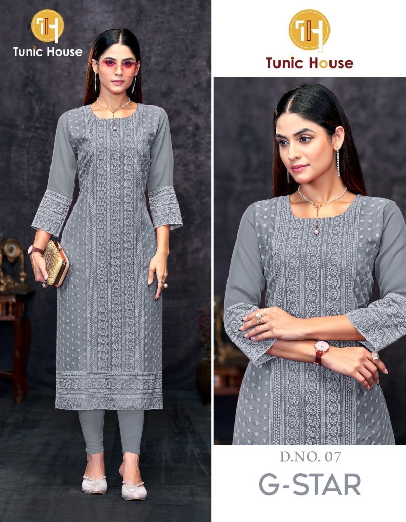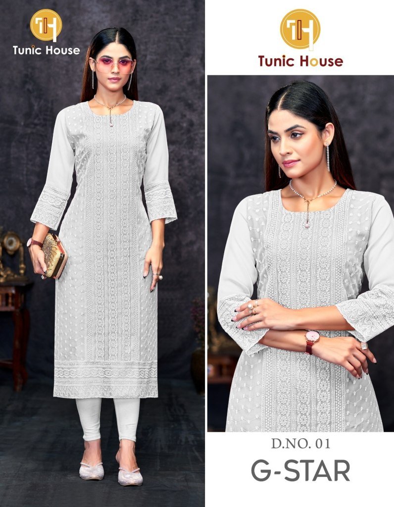 G star by Tunic House Georgette chikankari fancy Kurti Collection at low price
