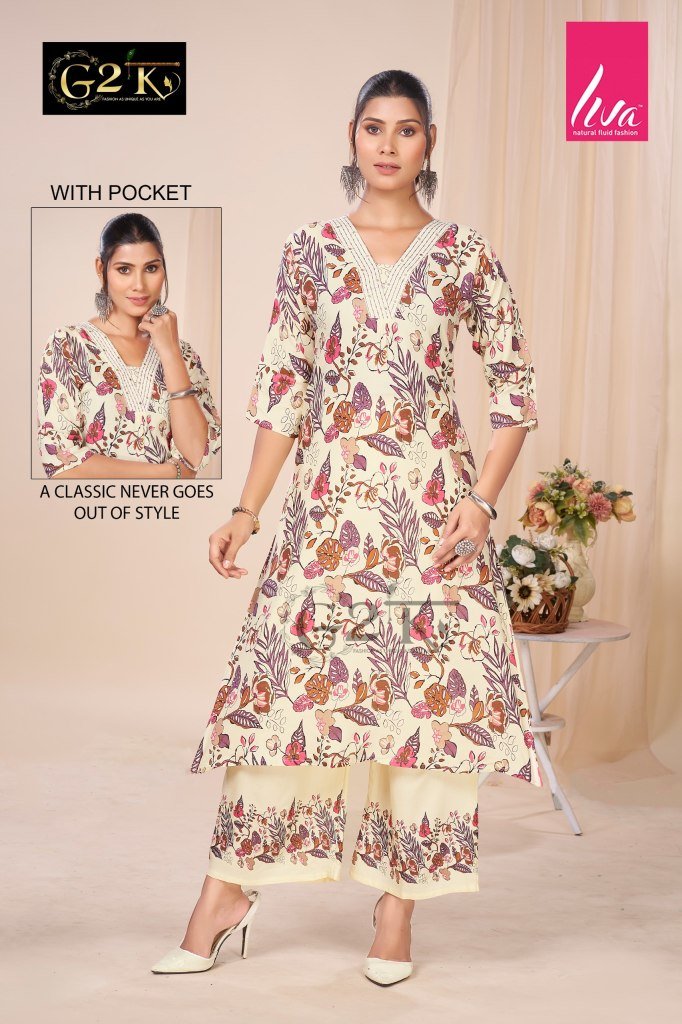 G2K Chahek Vol 3 Premium Embroidered Kurti And Daman Print Palazzo Set Wholesale
