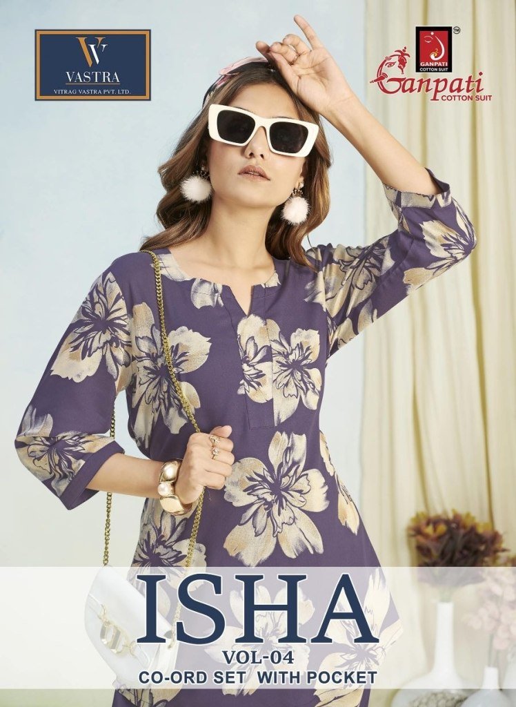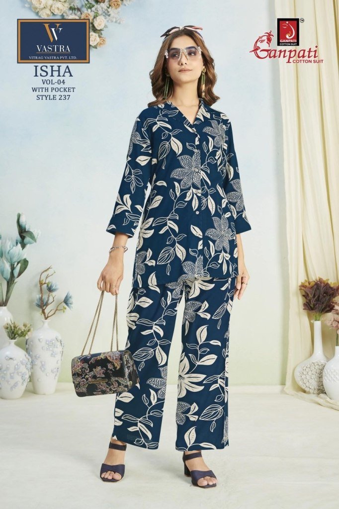 Ganpati Isha Vol 4 Elegant Rayon Printed Co Ord Set Top And Bottom Cord Set Wholesale