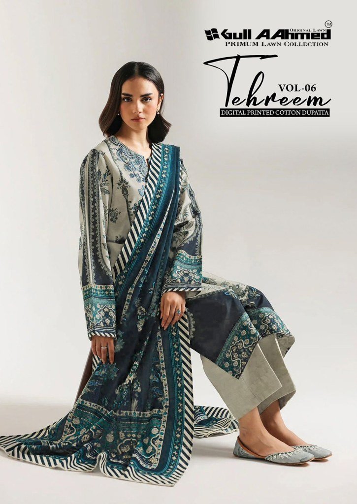Comfortable and breathable, the Gull Aahmed Tehreem Vol 6 Kurti Set is crafted in pure cambric cotton print with matching bottom and soft malmal dupatta—perfect for daily and office wear.