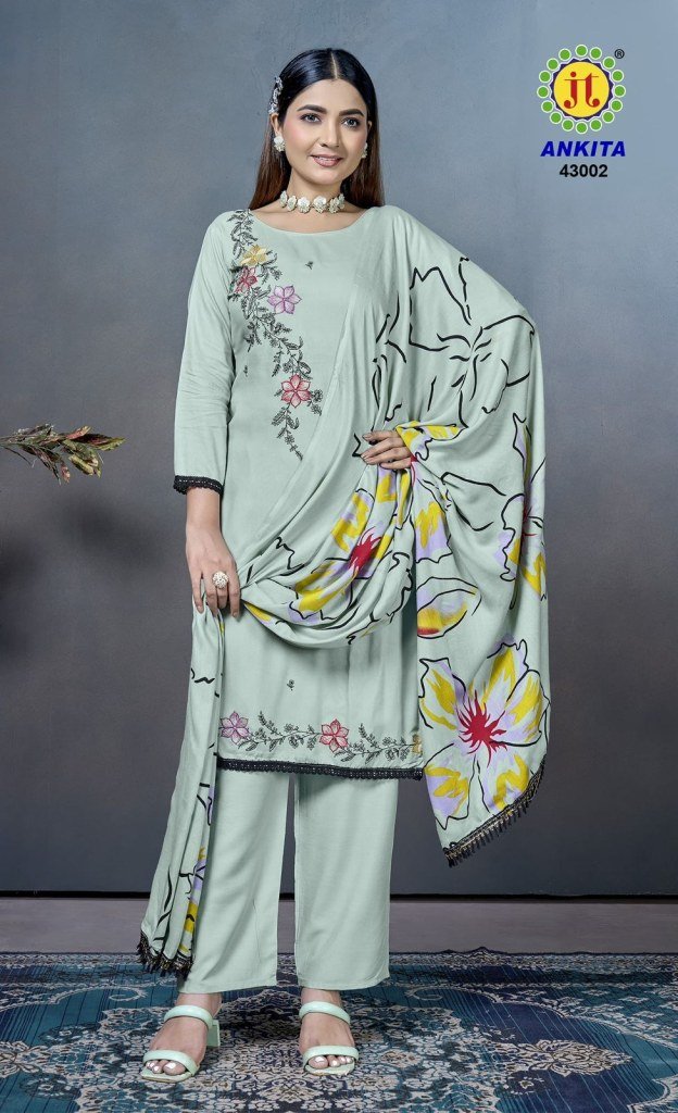 Jamatmal Tilokchand Ankita Vol 43 Rayon Embroidered Unstitched Suit with Printed Dupatta And Lace Wholesale