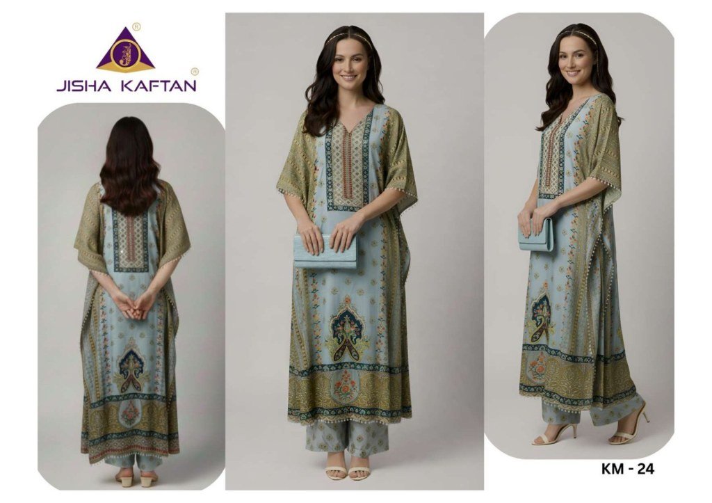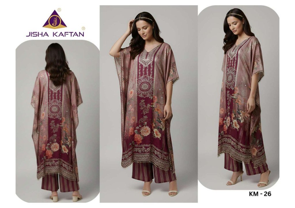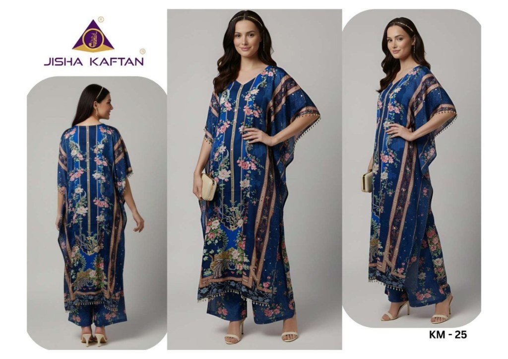 Jisha Kaftan Vol 4 Mirror Work Co-Ord Set Poly Feather Silk Free Size