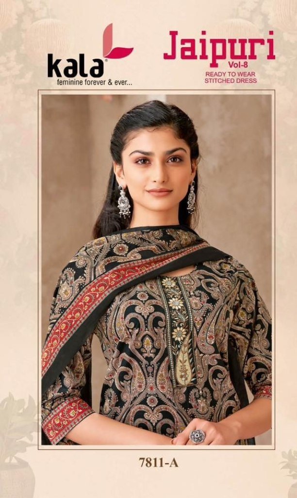 Kala Jaipuri Vol 8 Pure Cotton Ready Made Salwar Kameez Suit with Bottom And Dupatta Wholesale