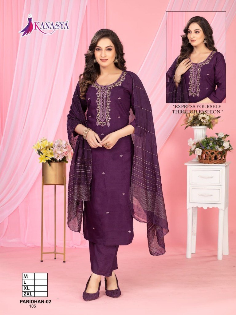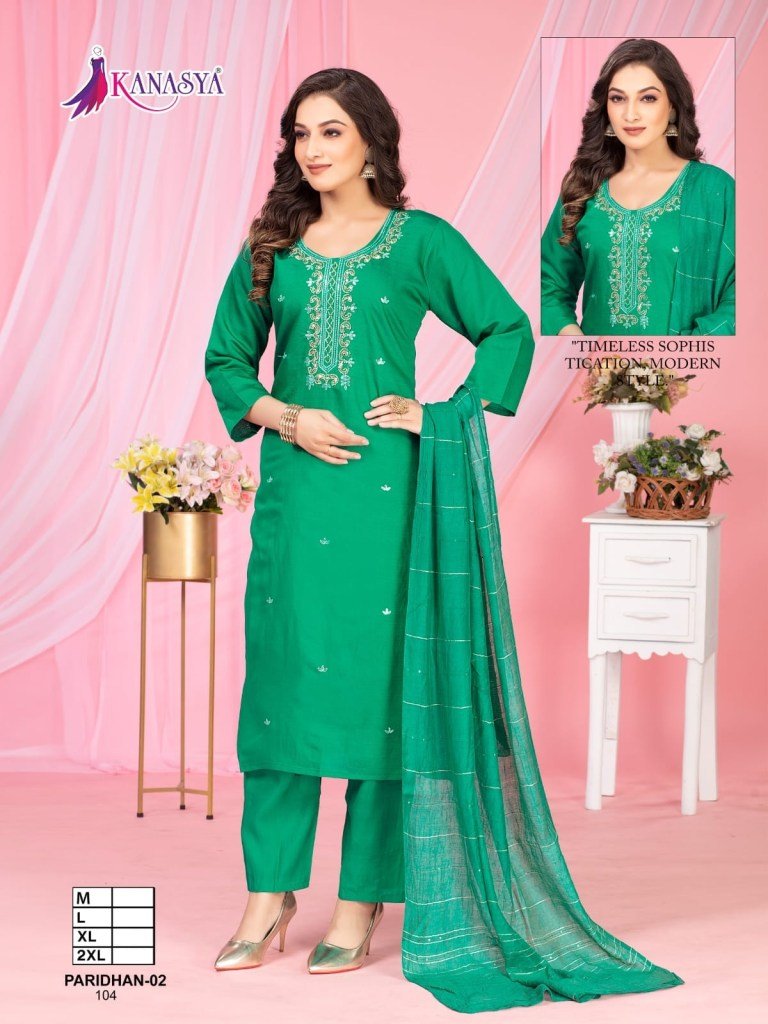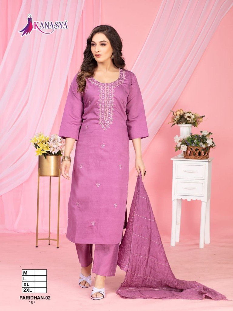Kanasya Paridhan Vol 02 Vatican Top And Bottom Embroidery Work And Digital Chanderi Dupatta Wholesale
