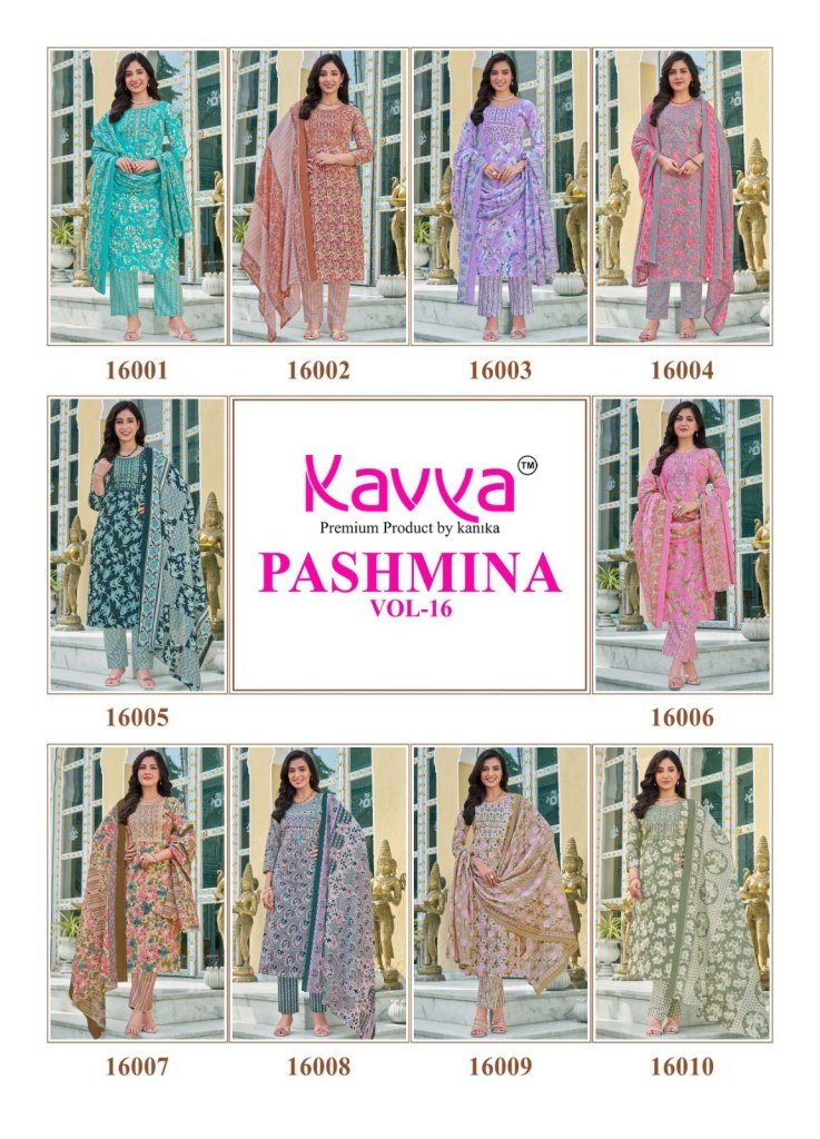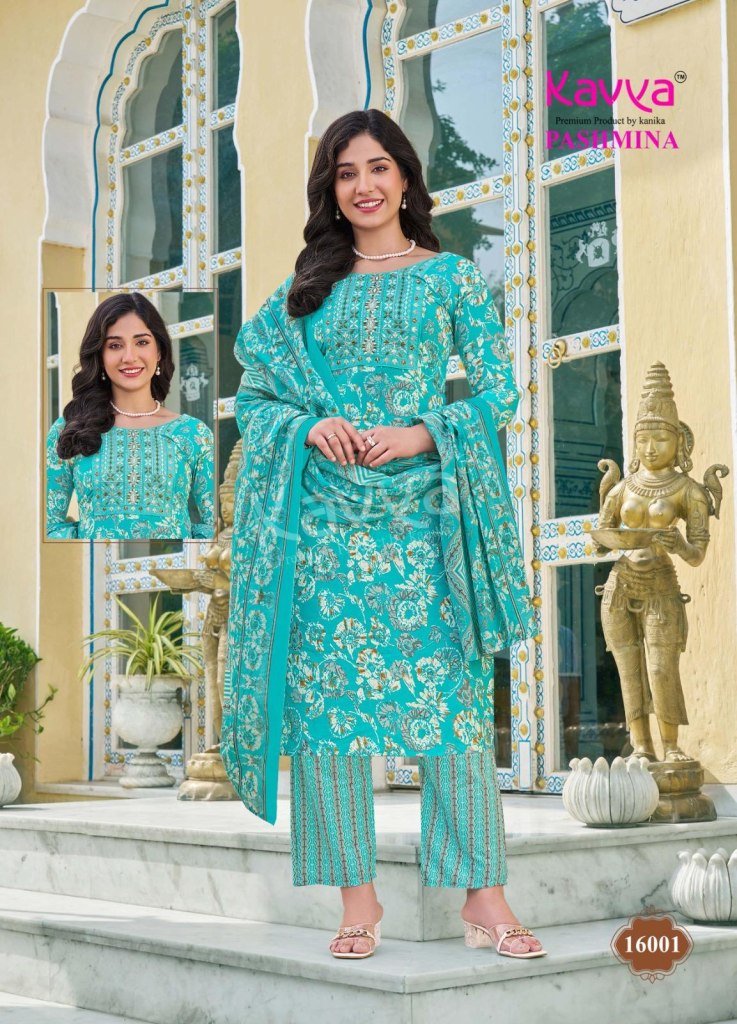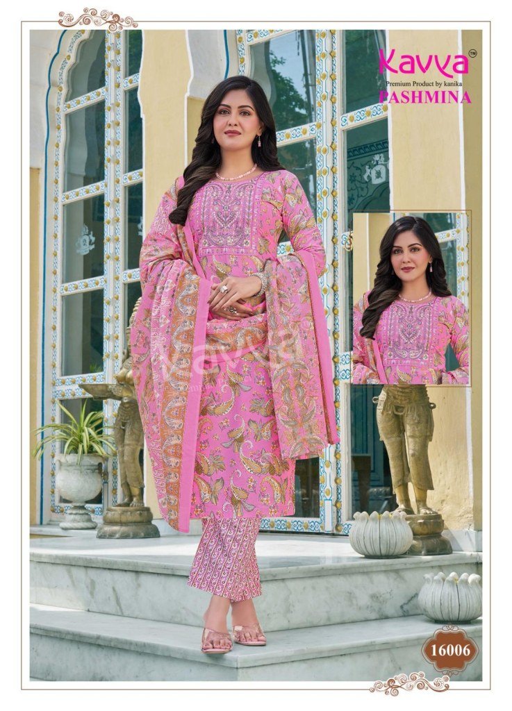 Kavya Pashmina Vol 16 Comfort Fit Malaysian Cotton Suit Embroidery work Neck Pant with Pure Cotton Dupatta Wholesale