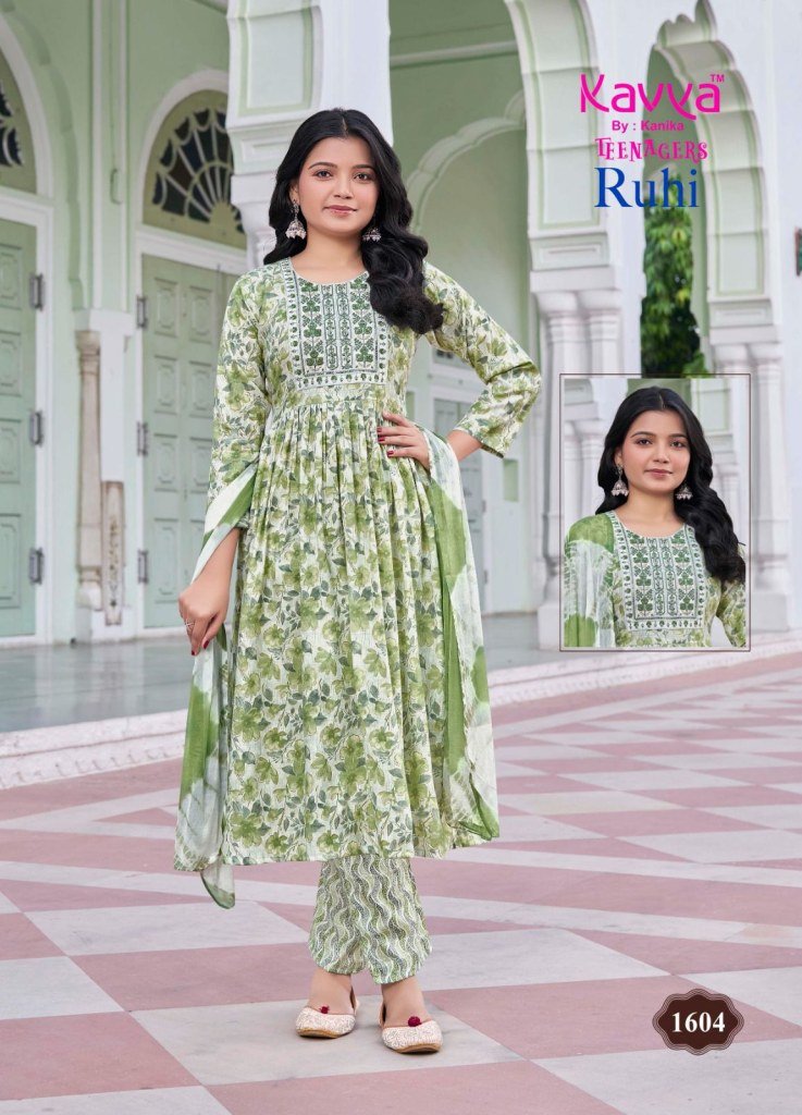 Kavya Ruhi Vol 16 Teenage Umbrella Cut Suit Set in Capsule Foil Print with Nazneen Chiffon Dupatta Wholesale