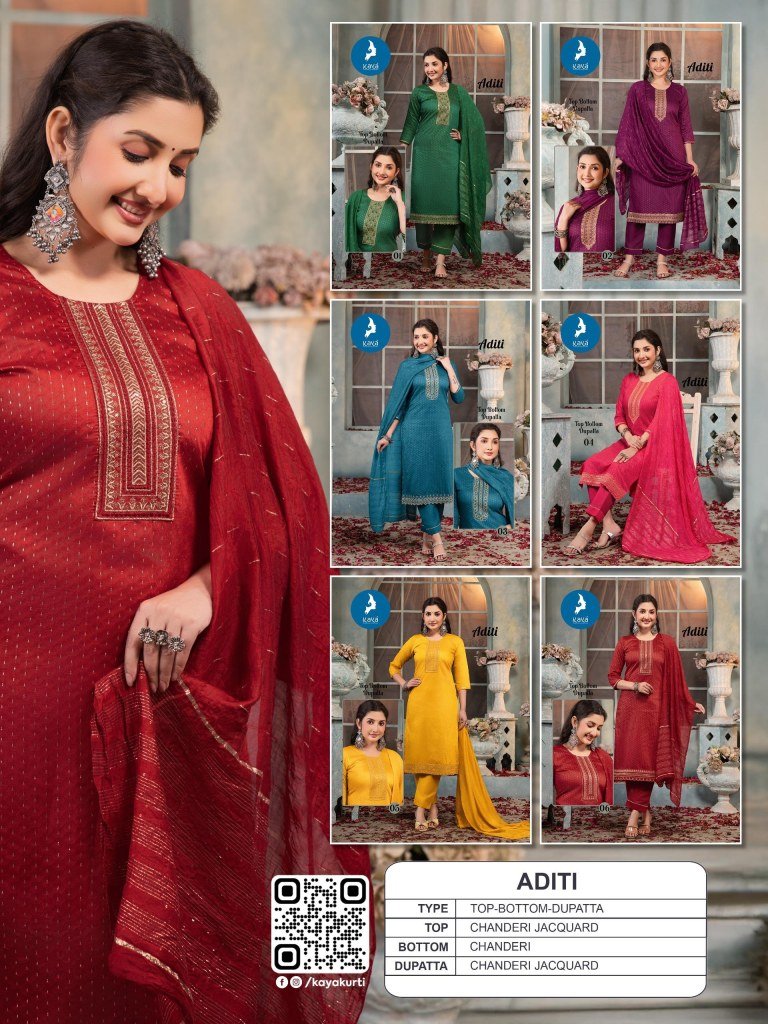 Kaya Kurti Aditi Chanderi Jacquard Kurti, Straight Cut with Matching Bottom And Chanderi Jacquard Dupatta Wholesale