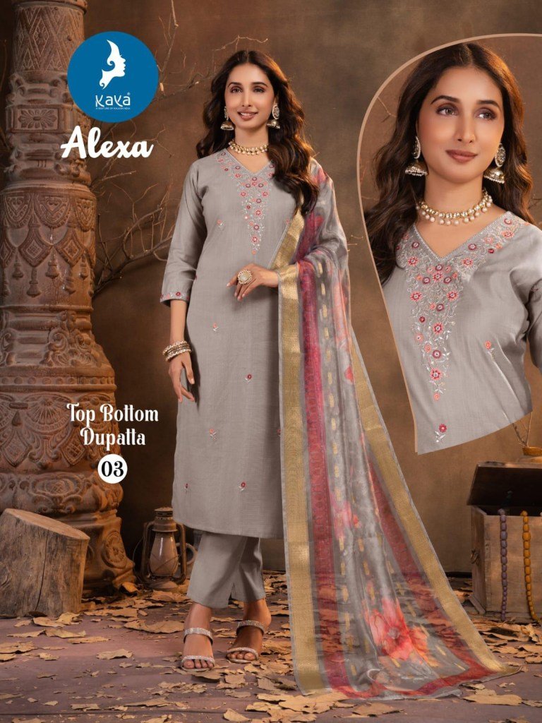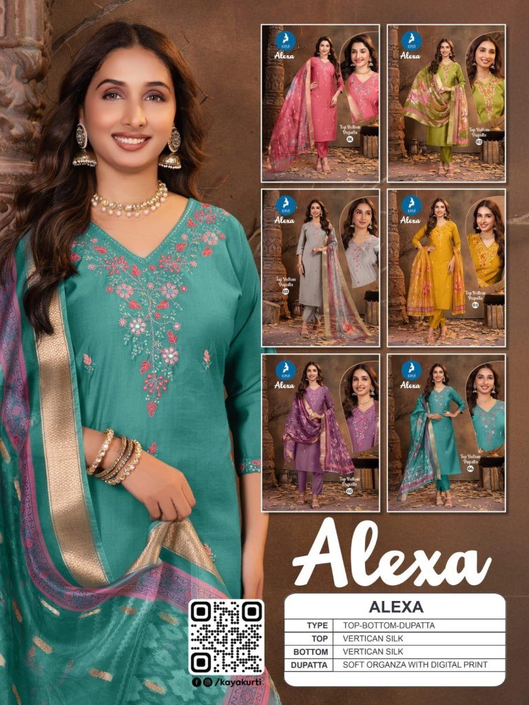 Kaya Kurti Alexa Silk Straight Kurti Set Vertical Silk Pants And Soft Digital Print Organza Dupatta Wholesale