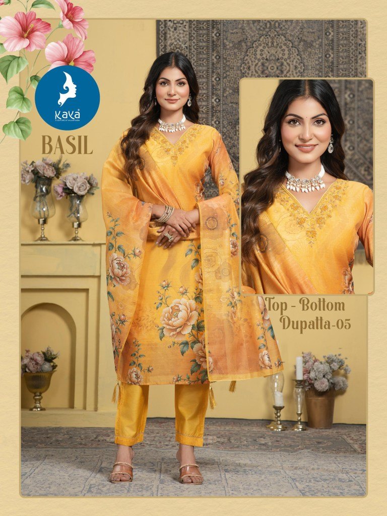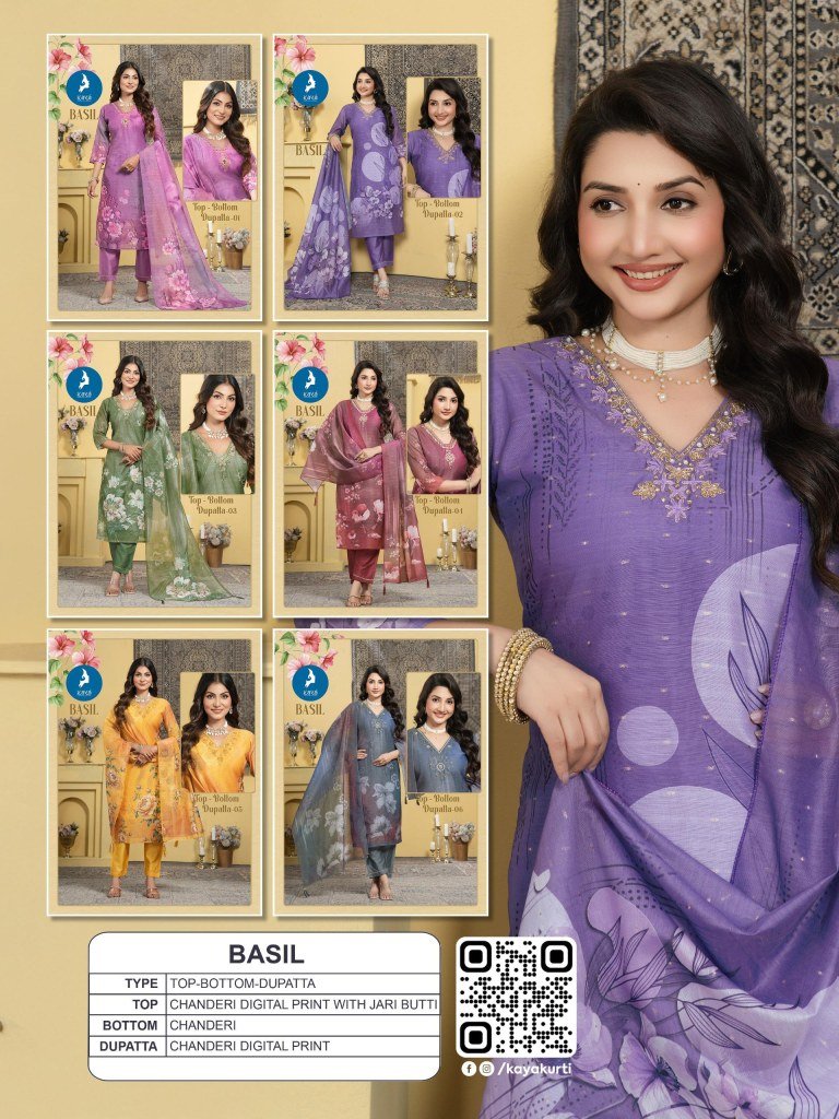Kaya Kurti Basil Straight Cut Chanderi Digital Print Suit Set with Jari Butti Bottom And Dupatta Wholesale