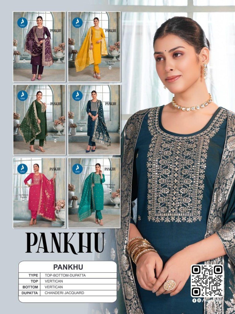 Kaya Kurti Pankhu Straight Cut Designer Kurti Set with Vertican Top And Bottom Chanderi Jacquard Dupatta Wholesale
