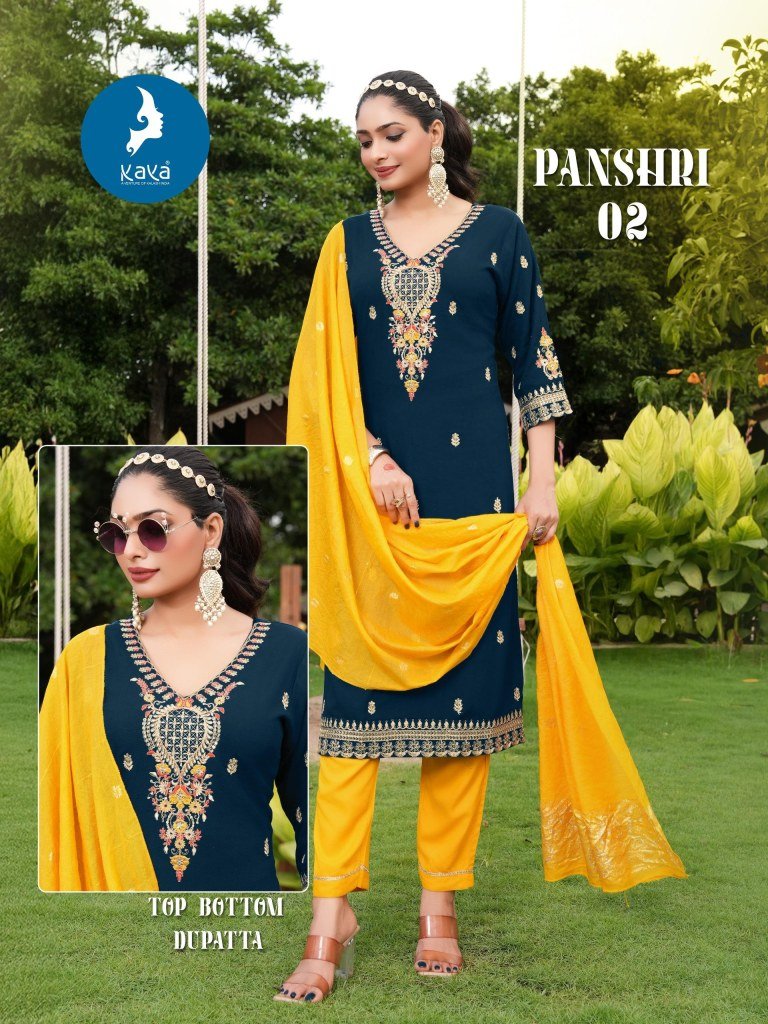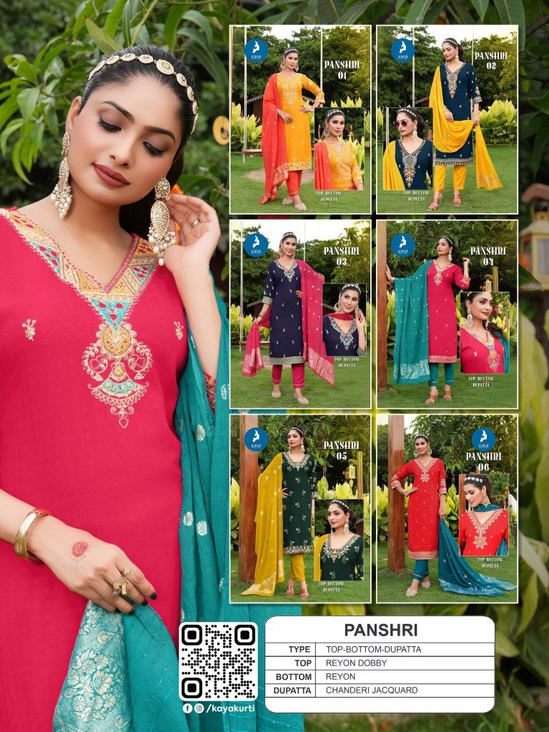 Kaya Kurti Panshri Designer Straight Cut Kurti Rayon Dobby Top Rayon Bottom Chanderi Jacquard Dupatta Wholesale
