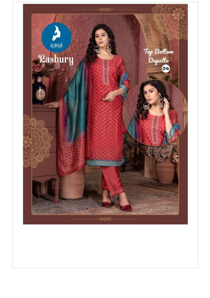 Kaya Rasbury Chanderi Digital Print Kurti Pant Set with Dupatta Elegant Ethnic Wear Wholesale