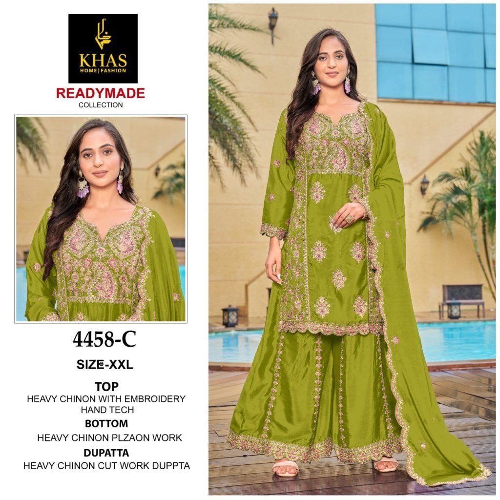 Khas D No 4458 Elegant Chinon Silk Embroidered Suit Set Top Bottom And Dupatta Wholesale