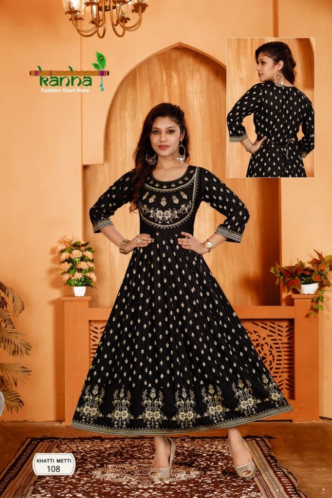 Khetti Metti by Kanha fancy heavy reyon embroidered kurti catalogue at low rate, Printed Kurtis can be your go-to for everyday wear. The fabric is easy to maintain and durable.