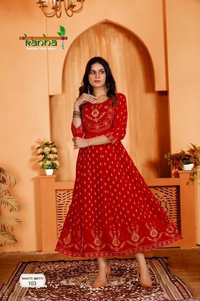 Khetti Metti by Kanha fancy heavy reyon embroidered kurti catalogue at low rate