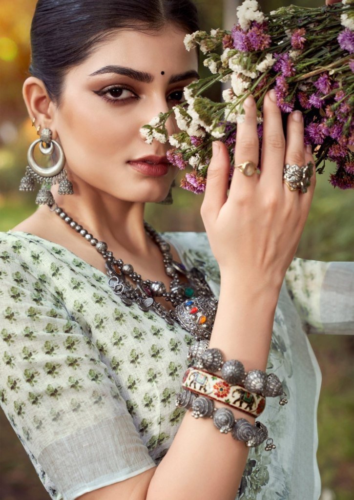 L T Fashion Vidhya Vol 2 Shimmer Weave Silver Heritage SaSilver Auraree Linen Cotton Catalague Wholesale