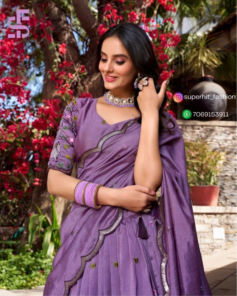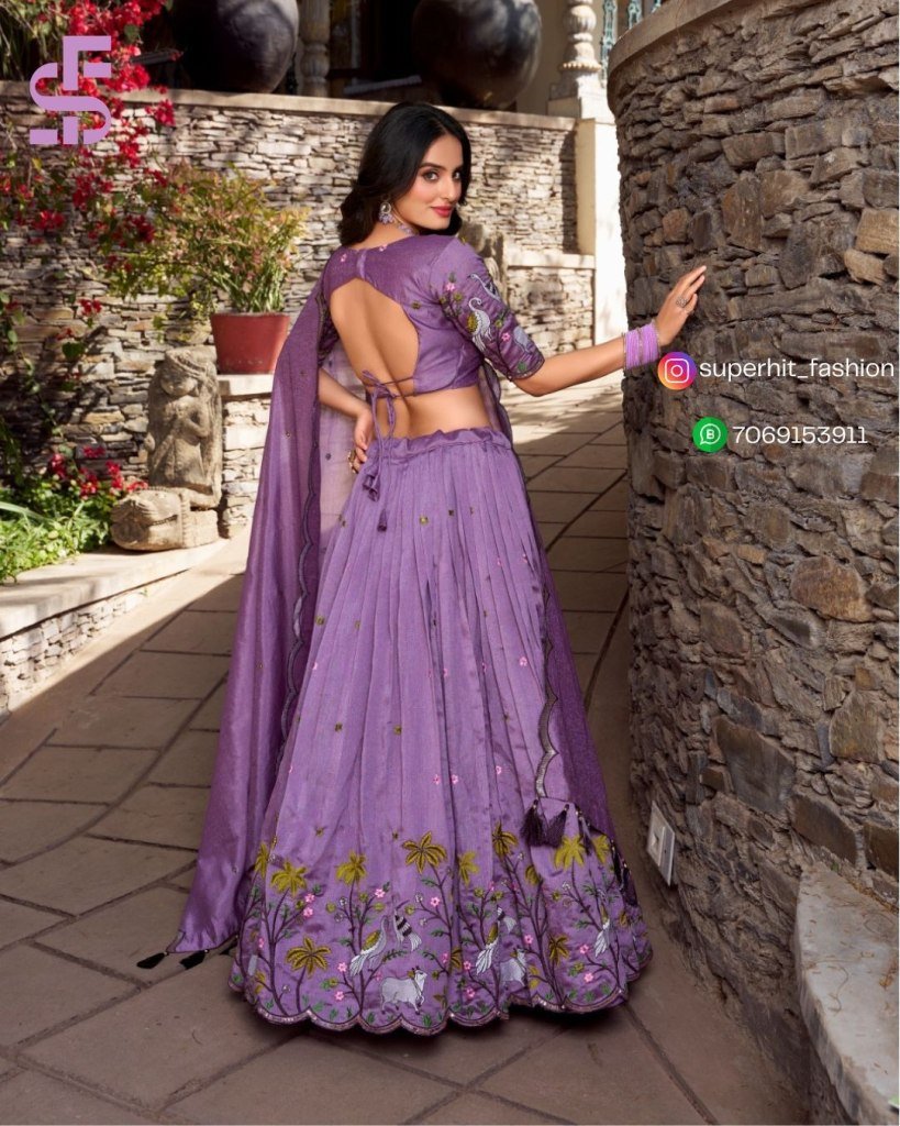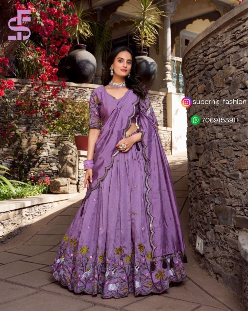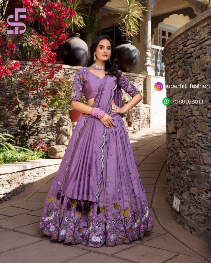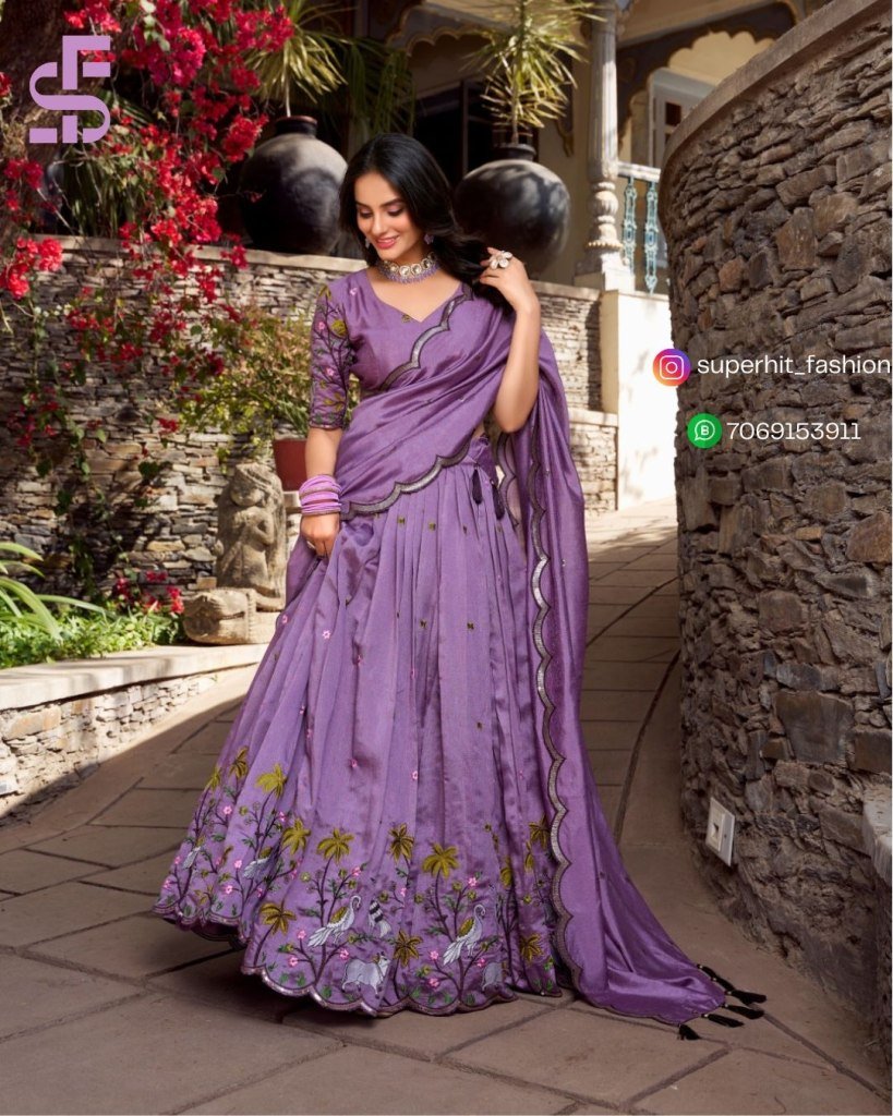 Lavender 1423 Love Bridesmaid Glow Lehenga Set Vichitra Shimmer with Sequins And Thread Embroidery, Tassels Dupatta