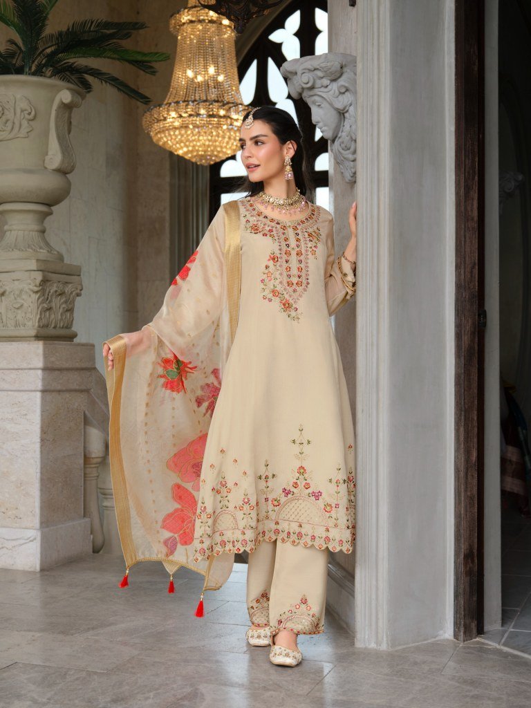 Lily And Lali Sarvari Designer Chinon Silk Suit Set with Hand Embroidery And Exclusive Dupatta Work Wholesale