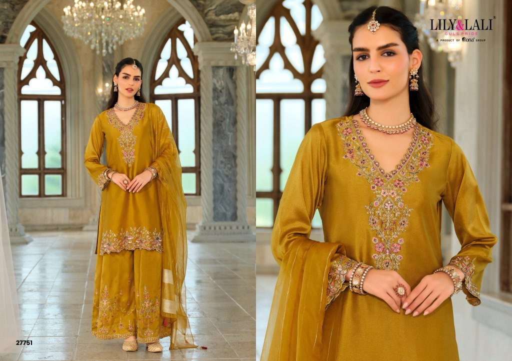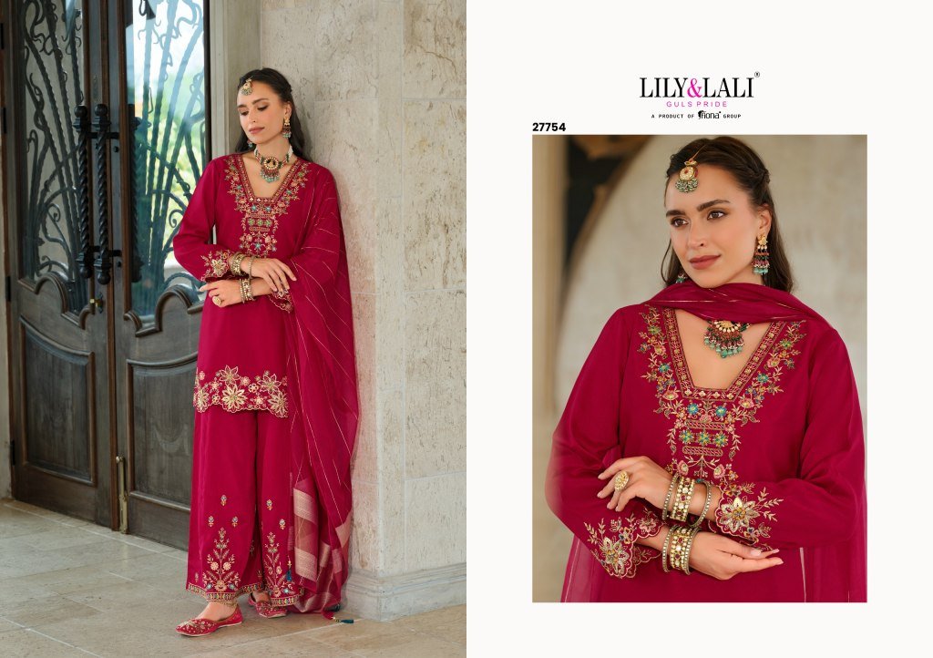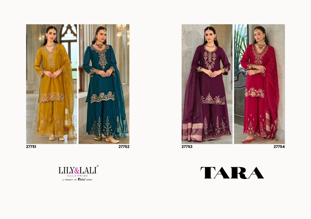Lily And Lali Tara Festival Collection Heavy Embroidered Silk Top with Cotton Lining Divider Palazzo And Pure Viscose Dupatta WholesaleFestival Collec