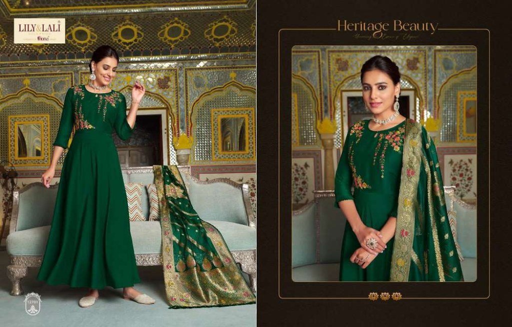 Lily and lali new presents Mohini vogue bemberg silk designer Kurti pant dupatta set catalogue