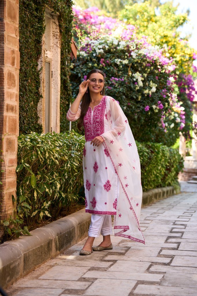 Lucknowi series pure organza silk with embroidered kurti pant and dupatta catalogue