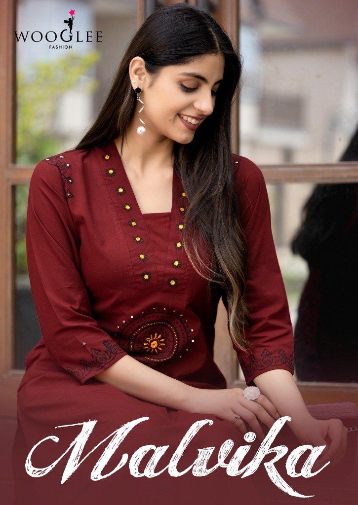 Discover Malvika by Wooglee, a beautiful collection of pure cotton printed kurtis with elegant handwork and matching bottoms. This readymade kurti set offers perfect comfort and ethnic style, now available at an affordable rate. Ideal for casual and festive wear.