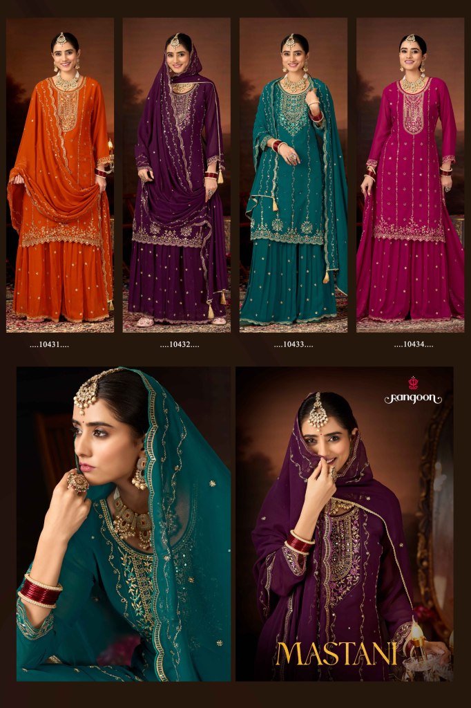 Mastani by Rangoon Designer Georgette Sharara Suit with Hand Mirror Work