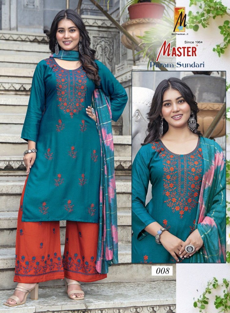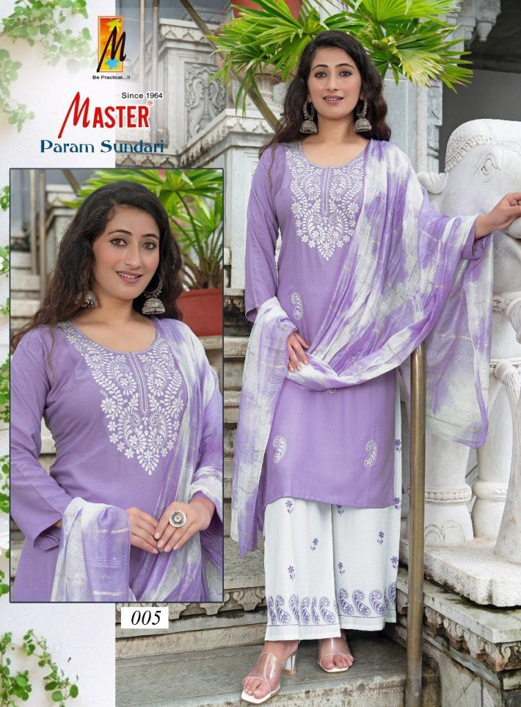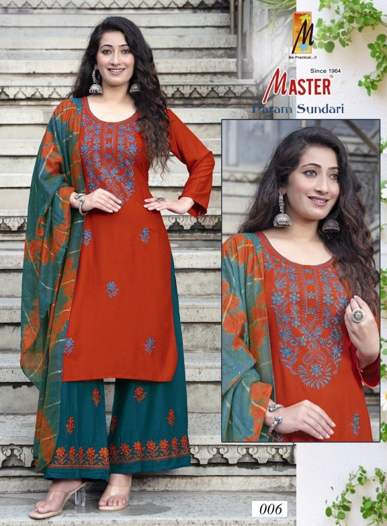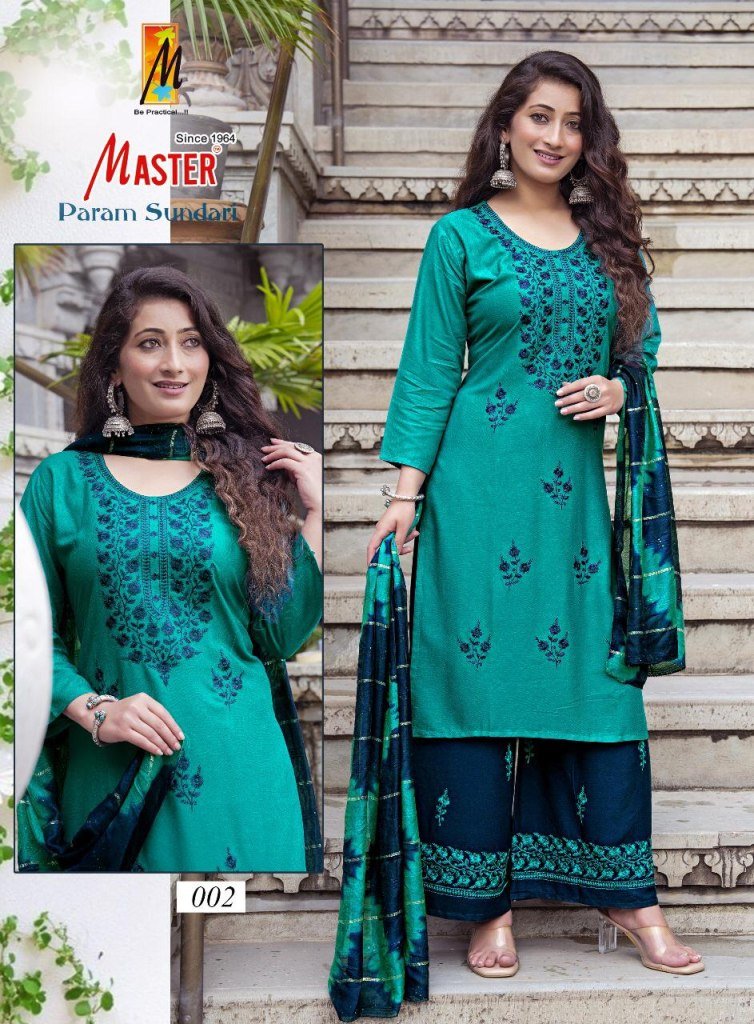 Master Param Sundari Rayon Kurti Catalogs Top And Plazo Set with Nazmine Dupatta Wholesale
