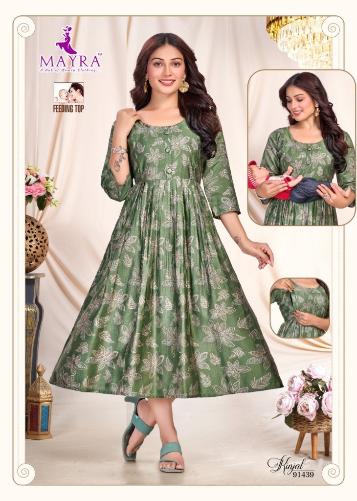 Mayra Kinjal Pure Vertican Print Umbrella Ghera Feeding Kurti with Full Interlock Wholesale