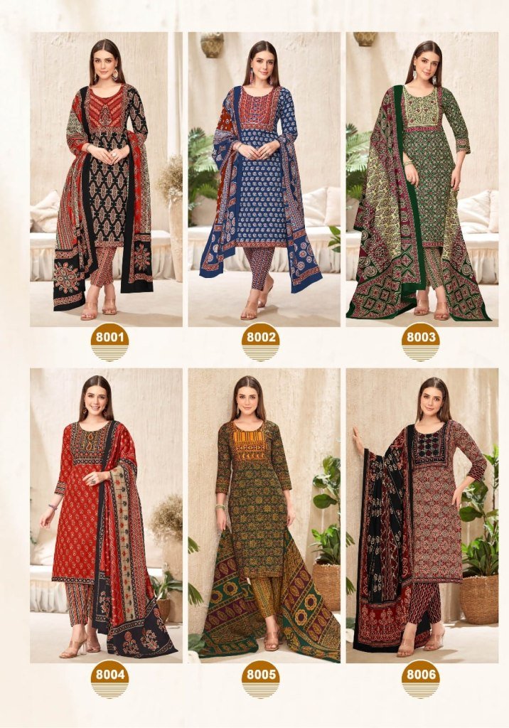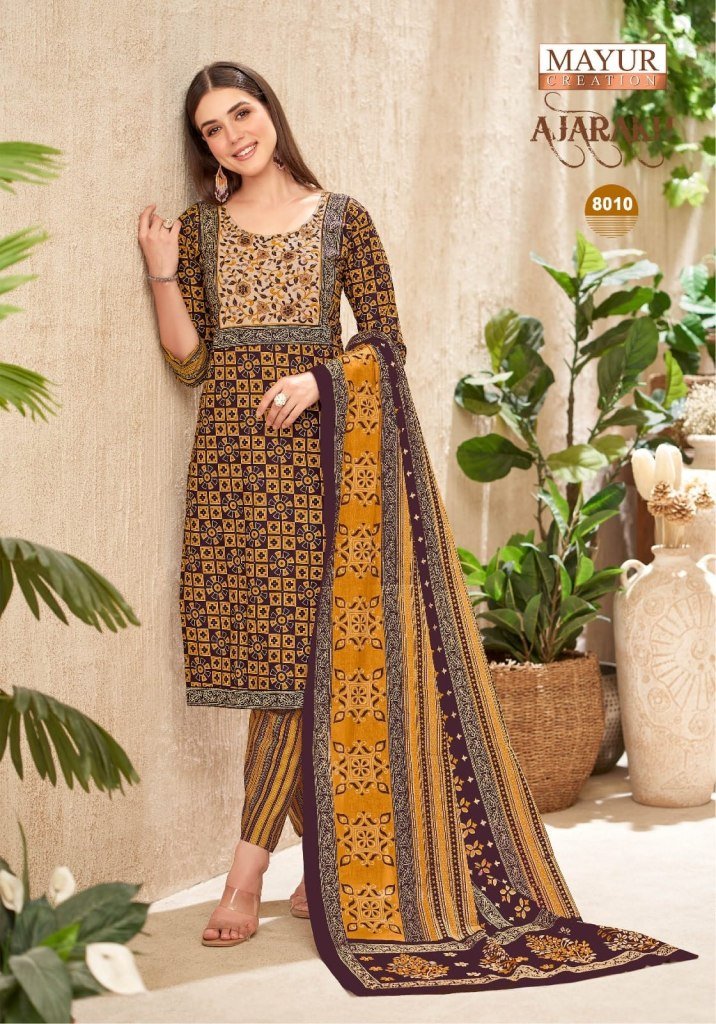 Mayur Ajarakh Vol 8 Pure Cotton Printed Kurti Pant Dupatta Set with Embroidered Neck Patch Wholesale