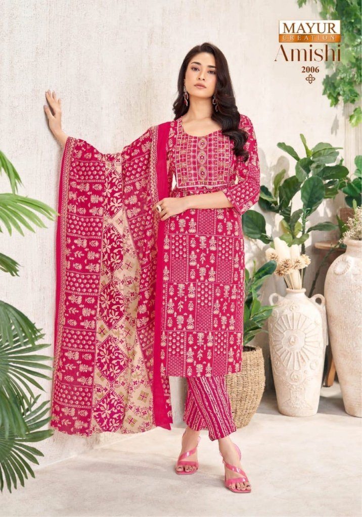 Mayur Amishi Vol 2 Printed Pure Cotton Kurti Pant with Elegant Neck Patch Embroidery And Dupatta Wholesale