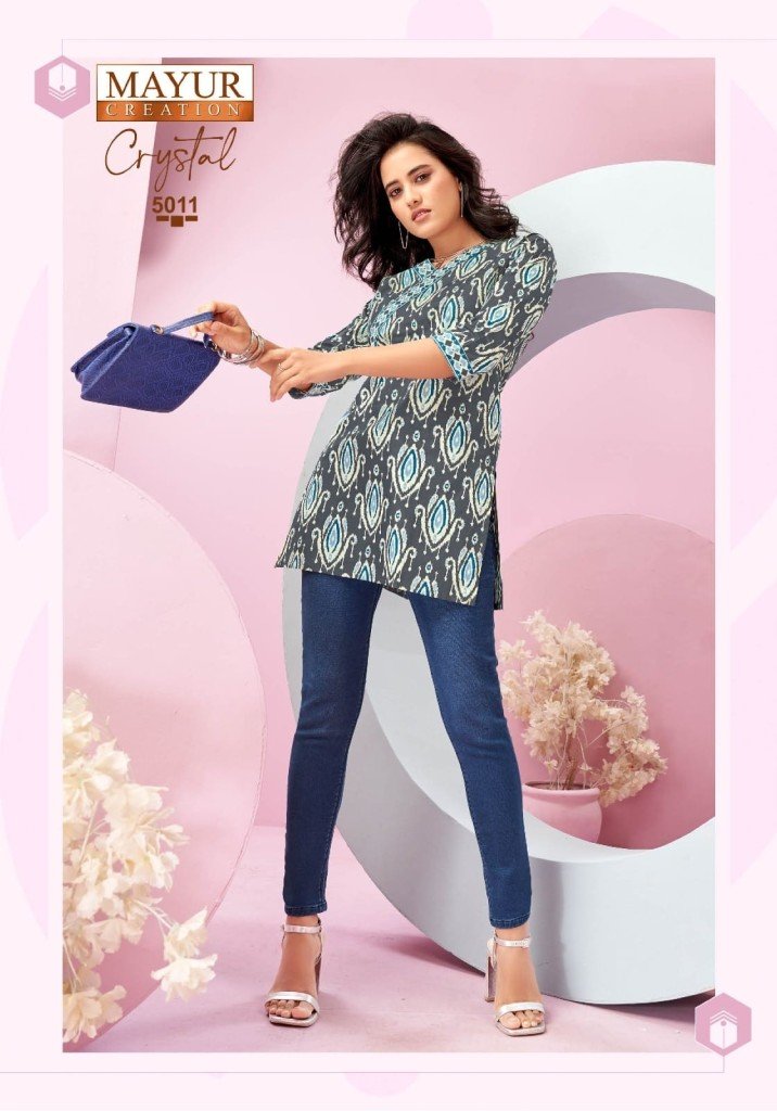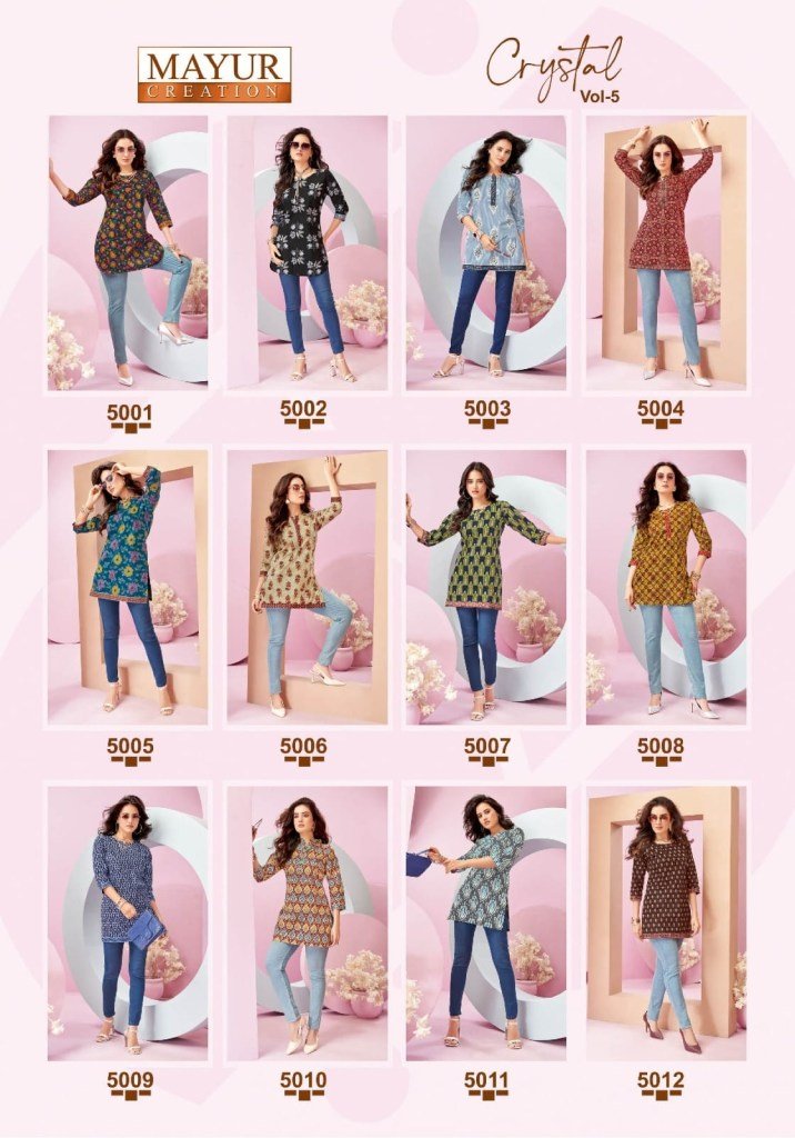 Mayur Creation Crystal Vol 5 Stylish Printed Tunic Top in Heavy Poplin Cotton Wholesale