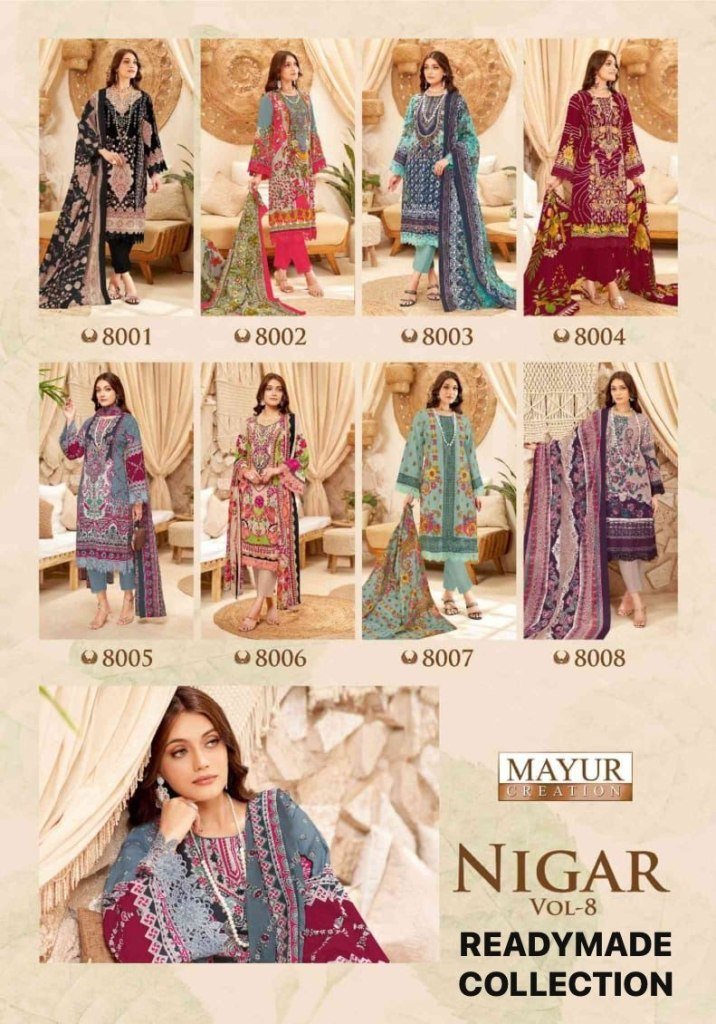 Mayur Creation Nigar Vol 8 Pure Cotton Salwar Suit Set Top, Bottom And Dupatta Designs Karachi Style Prints Wholesale