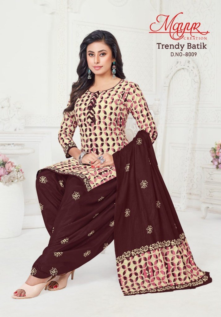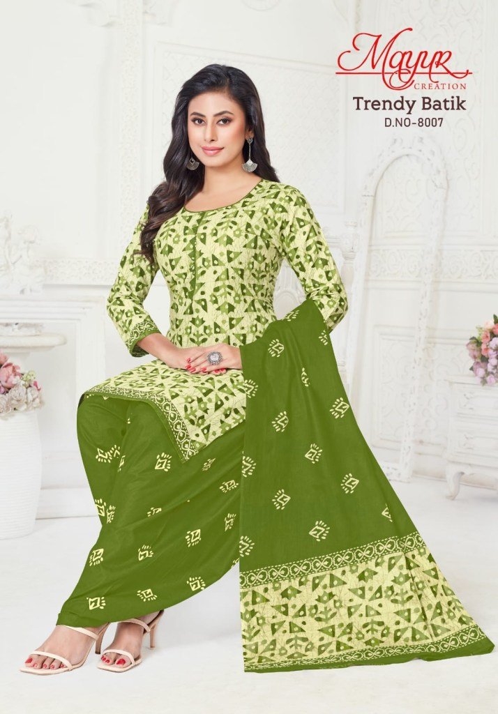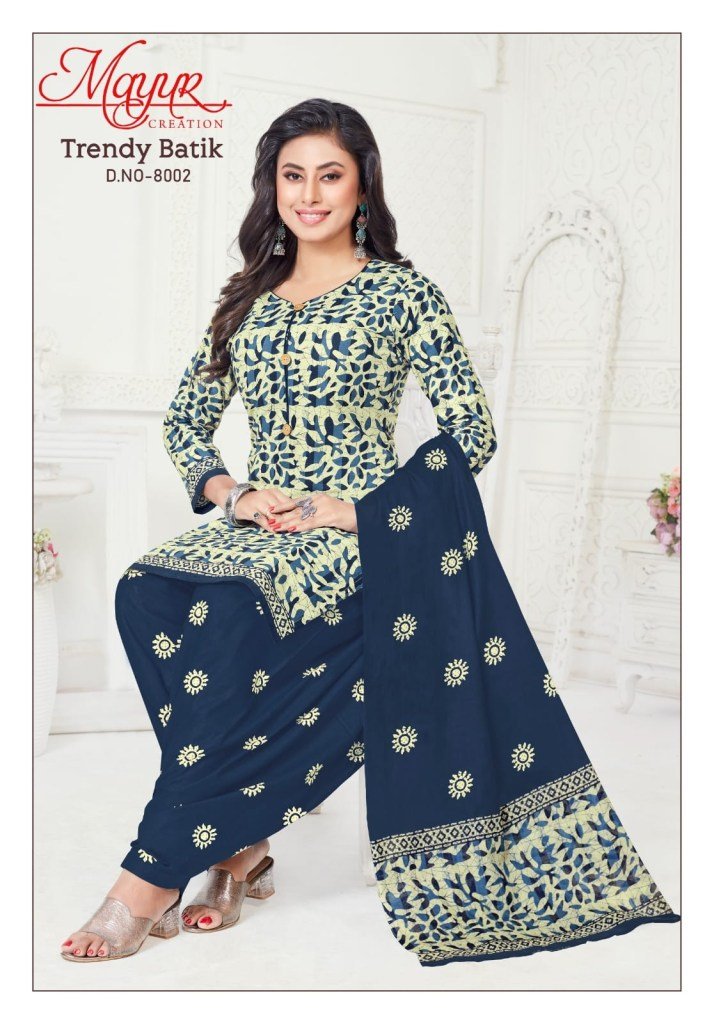 Mayur Creation Trendy Batik Vol 8 Cotton Print Dress Material Top Bottom And Dupatta Wholesale