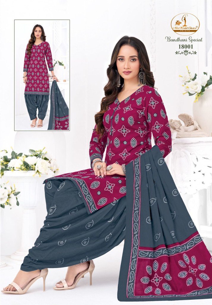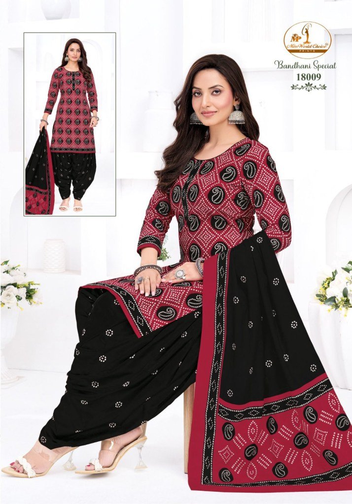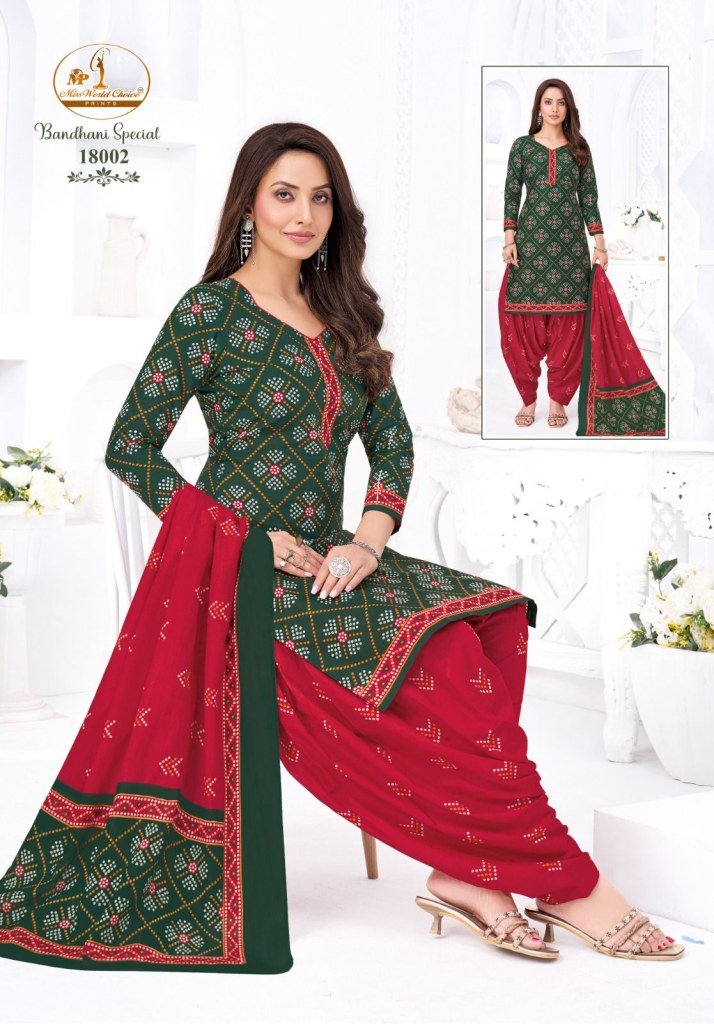 Miss World Bandhani Vol 18 Readymade Pure Cotton Patiyala Dress Set
