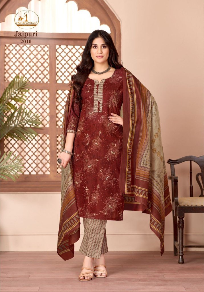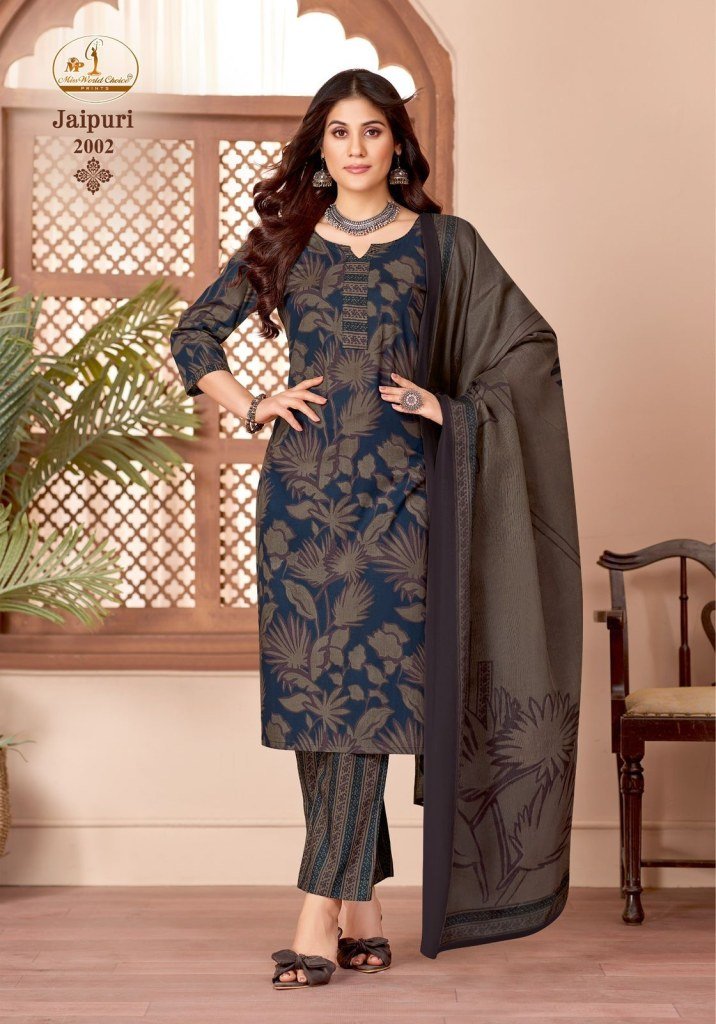 SKU : miss world jaipuri vol 2 kurti set, cotton kurti pant dupatta set, jaipuri print kurti set, daily we