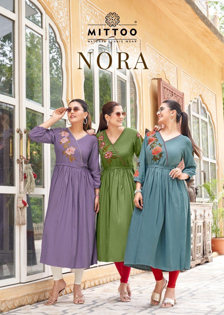Mittoo Nora Designer Heavy Rayon Kurti with Thread And Hand Embroidery Wholesale