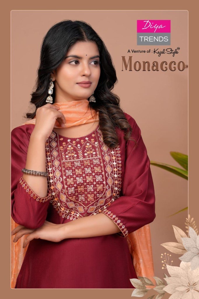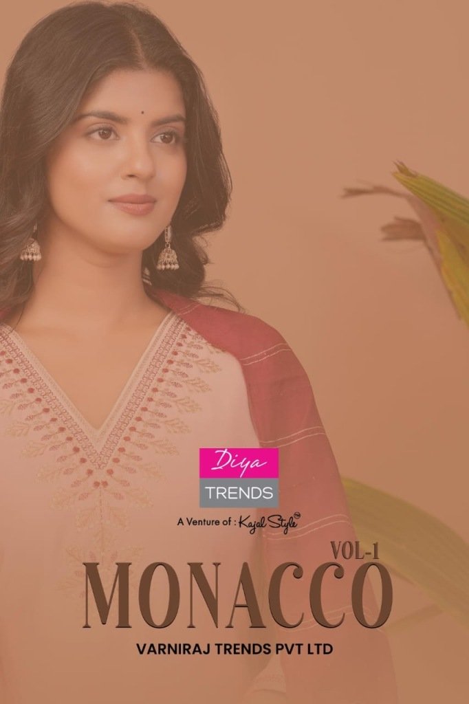 Monacco Vol 1 by Diya Trends Straight Kurti Pant and Dupatta catalogue at affordable rate