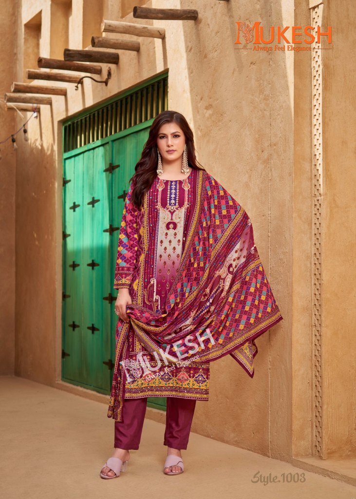 Mukesh Bin Saeed Designer Muslin Kurti Viscose Santoon Pant And Dupatta Set Aari Handwork And Mirror Embellished Wholesale
