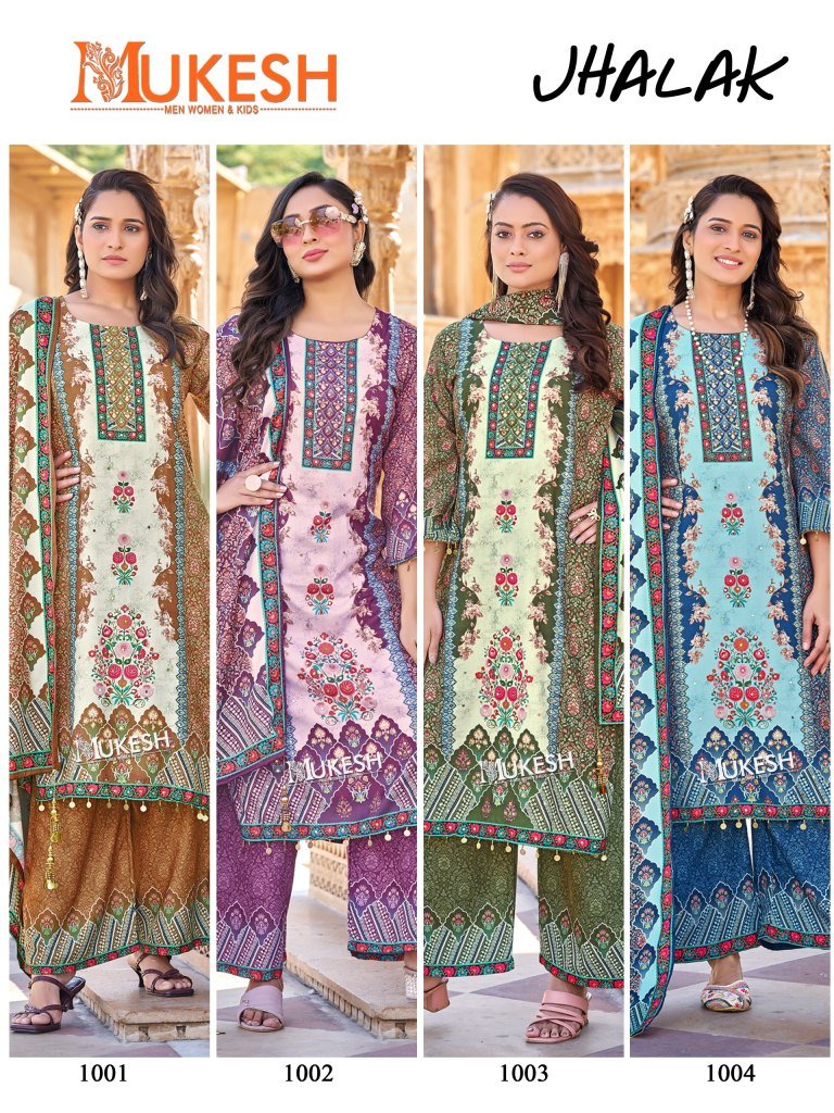 Mukesh Jhalak Jam Satin Readymade Pakistani Suit Mirror Work