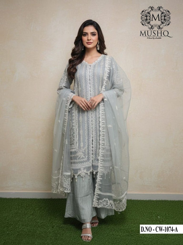 Mushq D NO CW 1074 Chiffon viscose Silk Readymade Sharara suit Catalogue Pcs Wholesale Rate