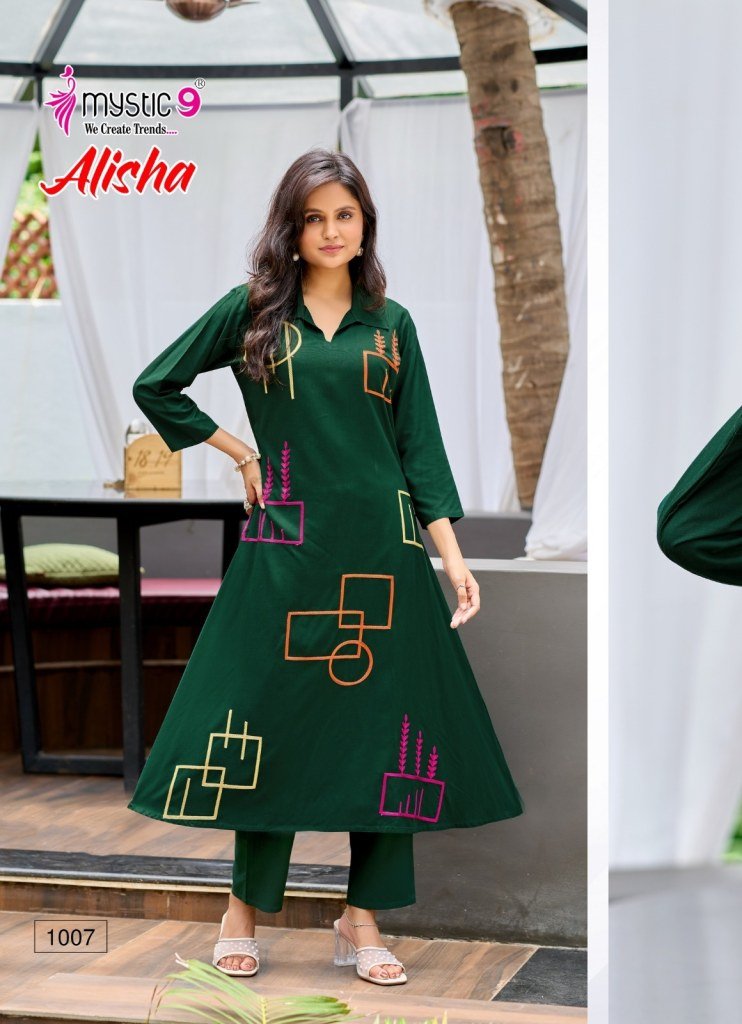 Mystic 9 Alisha Vol 1 Premium Heavy Rayon Slub A Line Co Ord Set with Front Pocket And Collar Detailing Wholesale